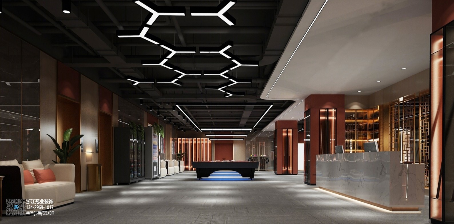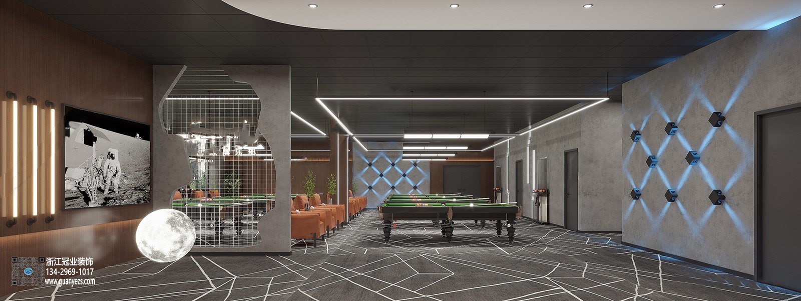 • 2024科技網(wǎng)紅風臺球廳裝修設(shè)計